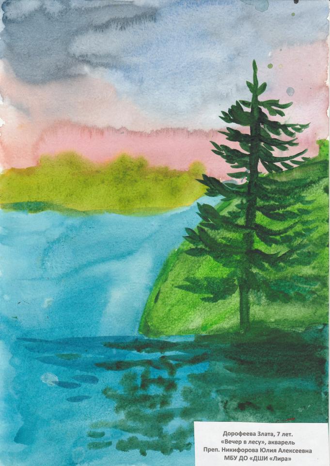 | 52 | Дорофеева Злата | В обработке | "Вечер в лесу" | Рисунок | Никифирова Юлия Алексеевна | Принята | Фото работы |