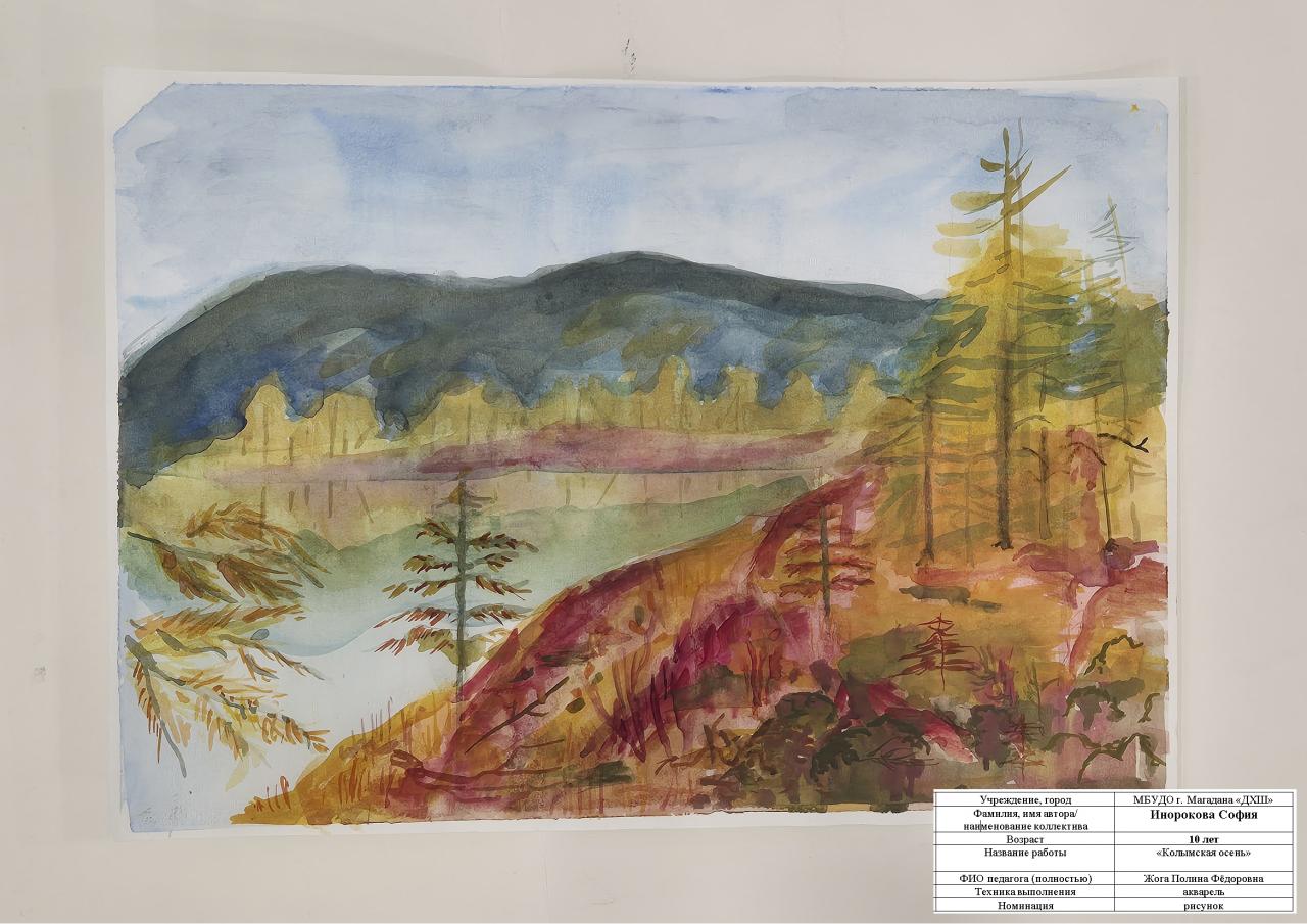 | 33 | Инокорова София | В обработке | "Колымская осень" | Рисунок | Жога Полина Фёдоровна | Принята | Фото работы |