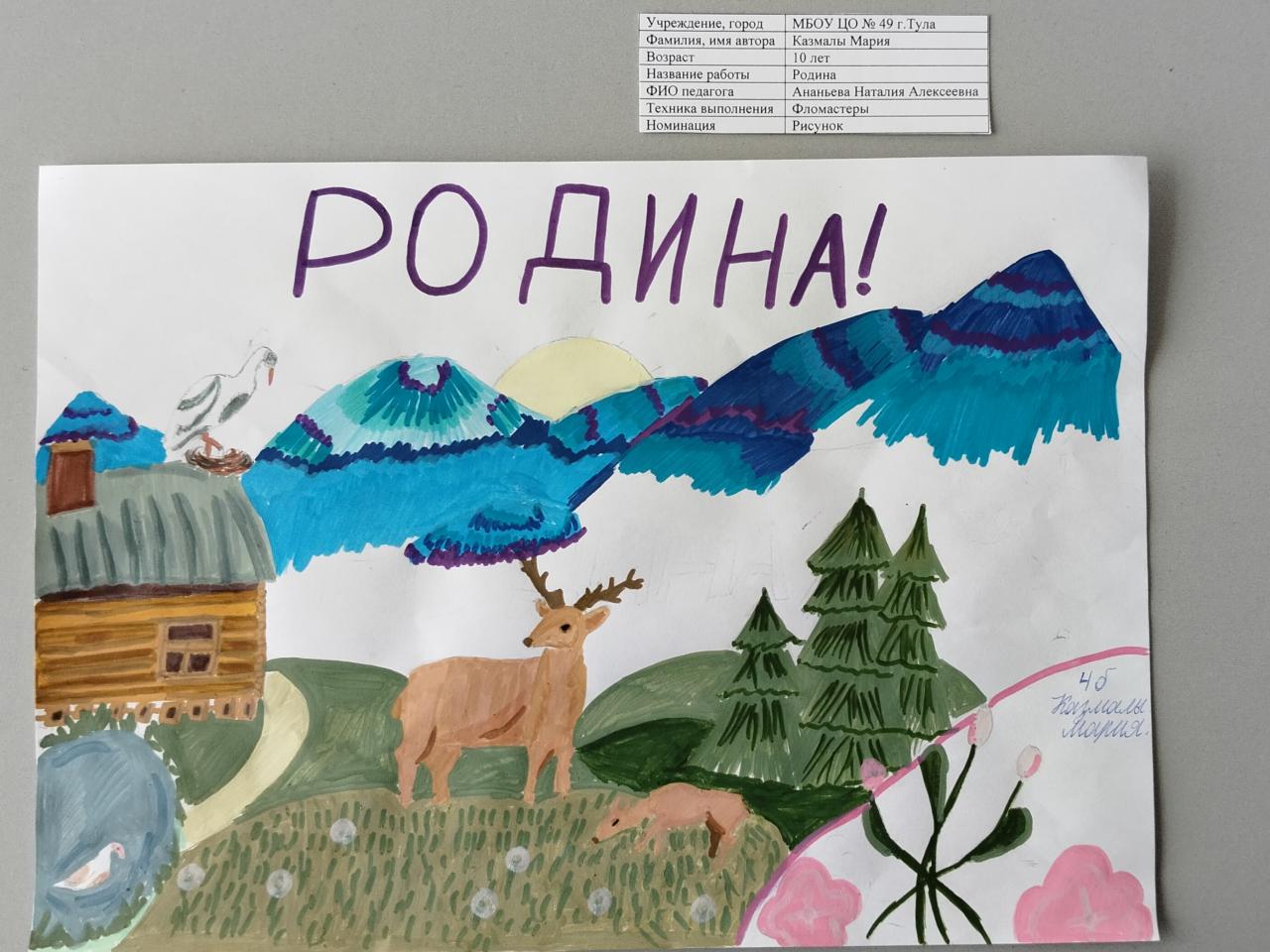 | 72 | Казмалы Мария | В обработке | "Родина" | Рисунок | Ананьева Наталия Алексеевна | Принята | Фото работы |