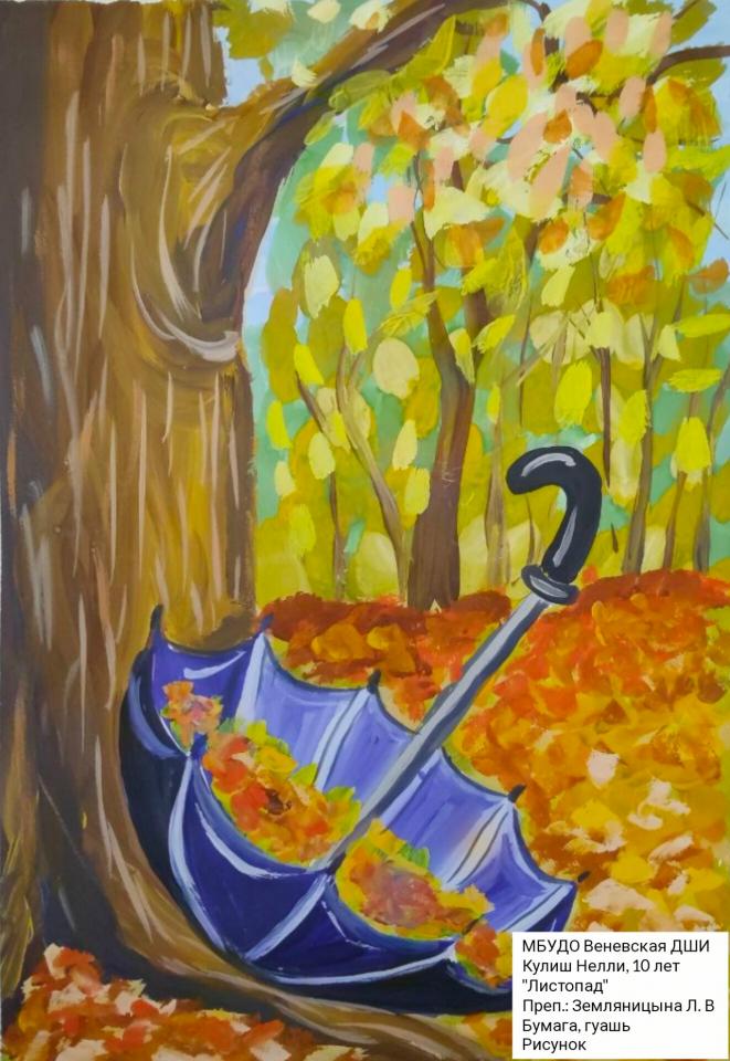 | 2 | Березкина София | В обработке | "Опавшие листья" | Рисунок | Ларина Наталия Сергеевна | Принята | Фото работы |