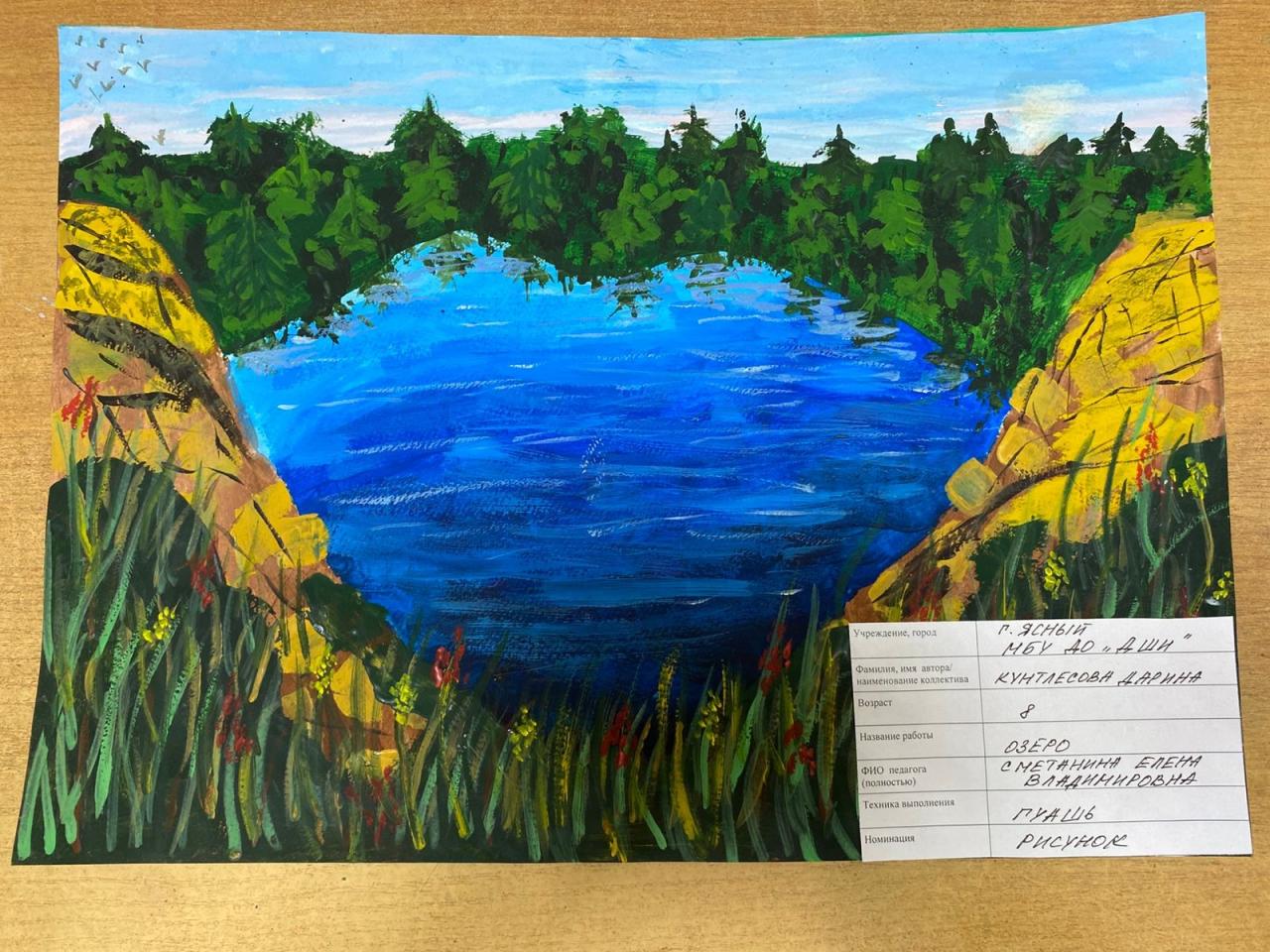 | 128 | Кунтлесова Дарина | В обработке | "Озеро" | Рисунок | Сметанина Елена Владимировна | Принята | Фото работы |