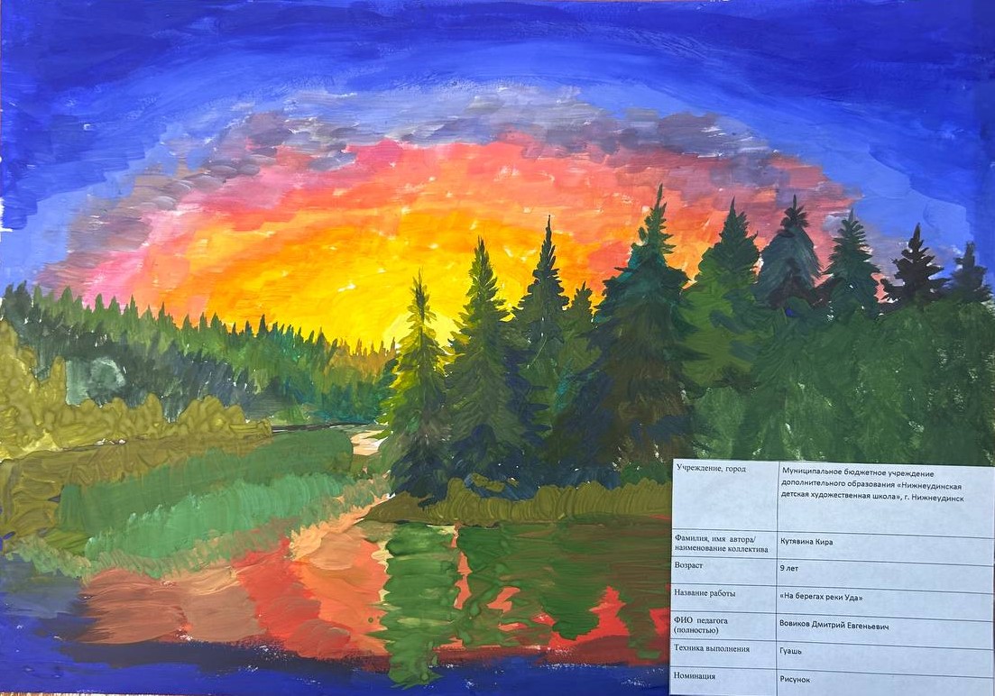 | 26 | Кутявина Кира | В обработке | "На берегах реки Уда" | Рисунок | Вовиков Дмитрий Евгеньевич | Принята | Фото работы |