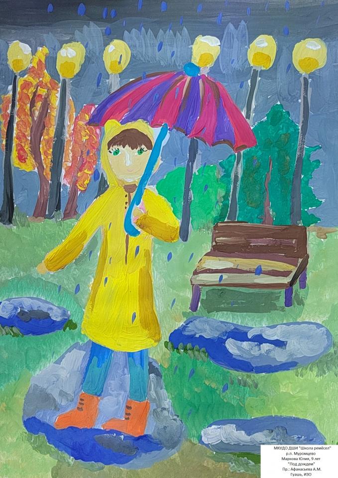 | 115 | Маркова Юлия | В обработке | "Под дождем" | Рисунок | Афанасьева Анна Михайловна | Принята | Фото работы |