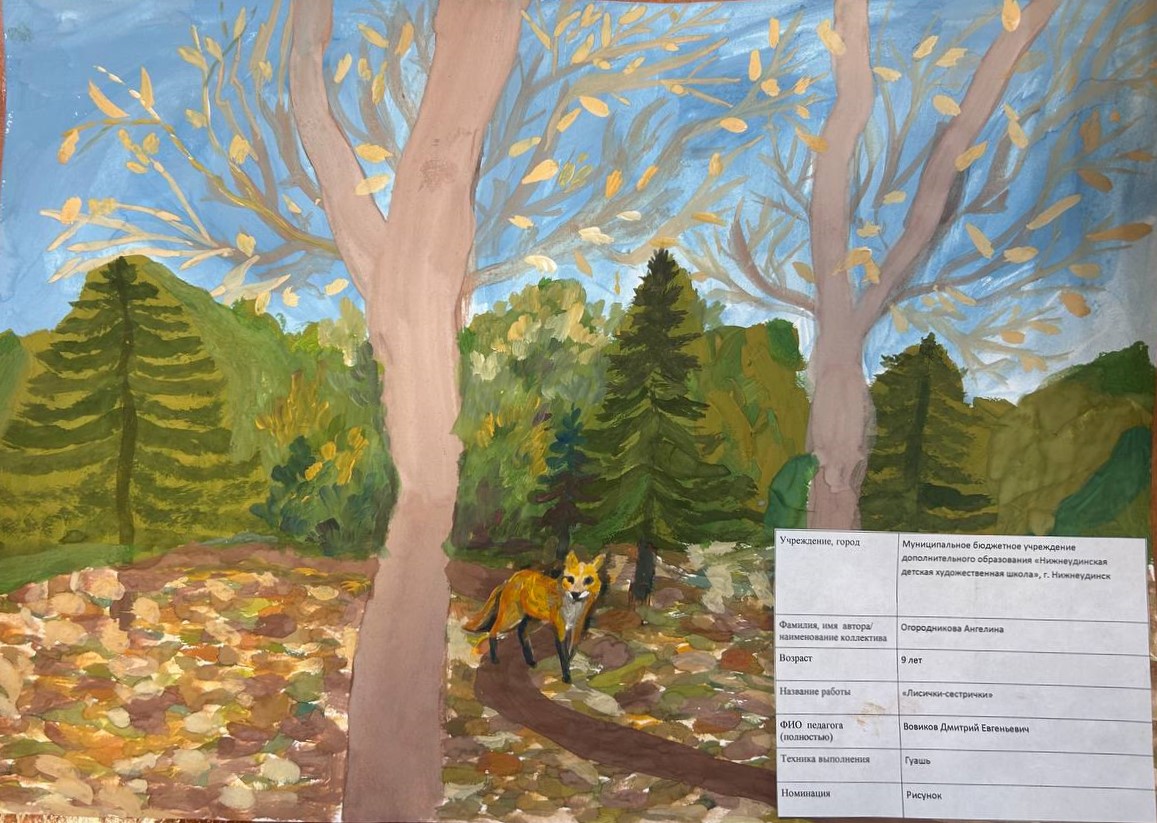 | 29 | Огородникова Ангелина | В обработке | "Лисички-сестрички" | Рисунок | Вовиков Дмитрий Евгеньевич | Принята | Фото работы |