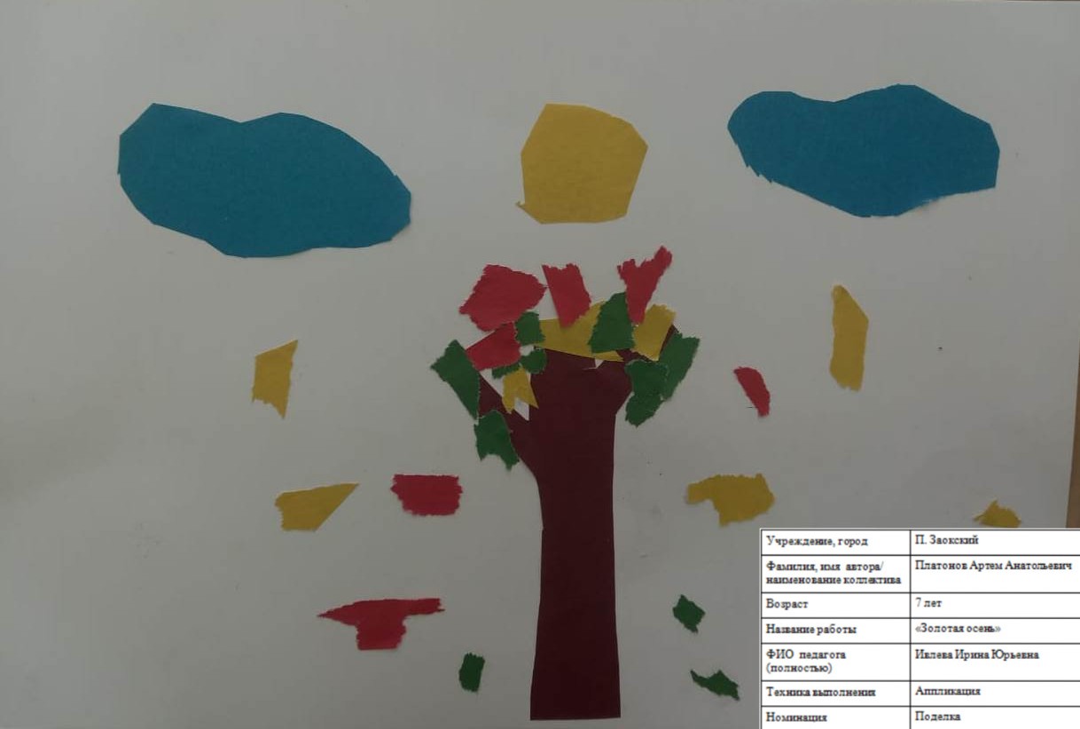 | 113 | Платонов Артём | В обработке | "Золотая осень" | Поделка | Ивлева Ирина Юрьевна | Принята | Фото работы |