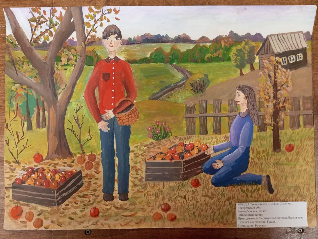 | 12 | Розова Ульяна | В обработке | "Яблочный сезон" | Рисунок | Чернышова Светлана Валерьевна | Принята | Фото работы |