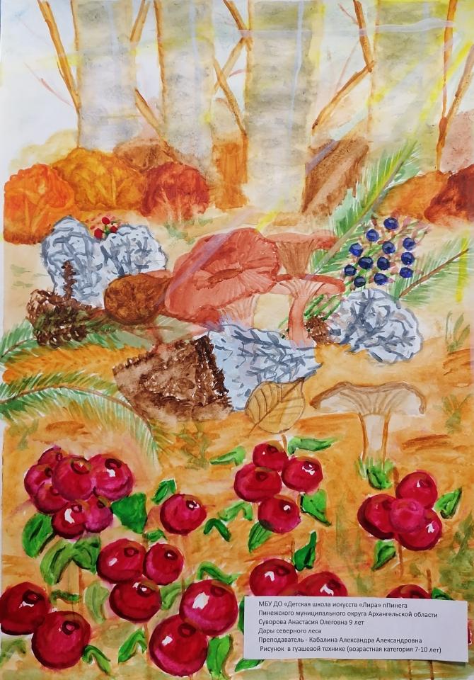 | 94 | Суворова Анастасия | В обработке | "Дары северного леса" | Рисунок | Кабалина Александра Александровна | Принята | Фото работы |