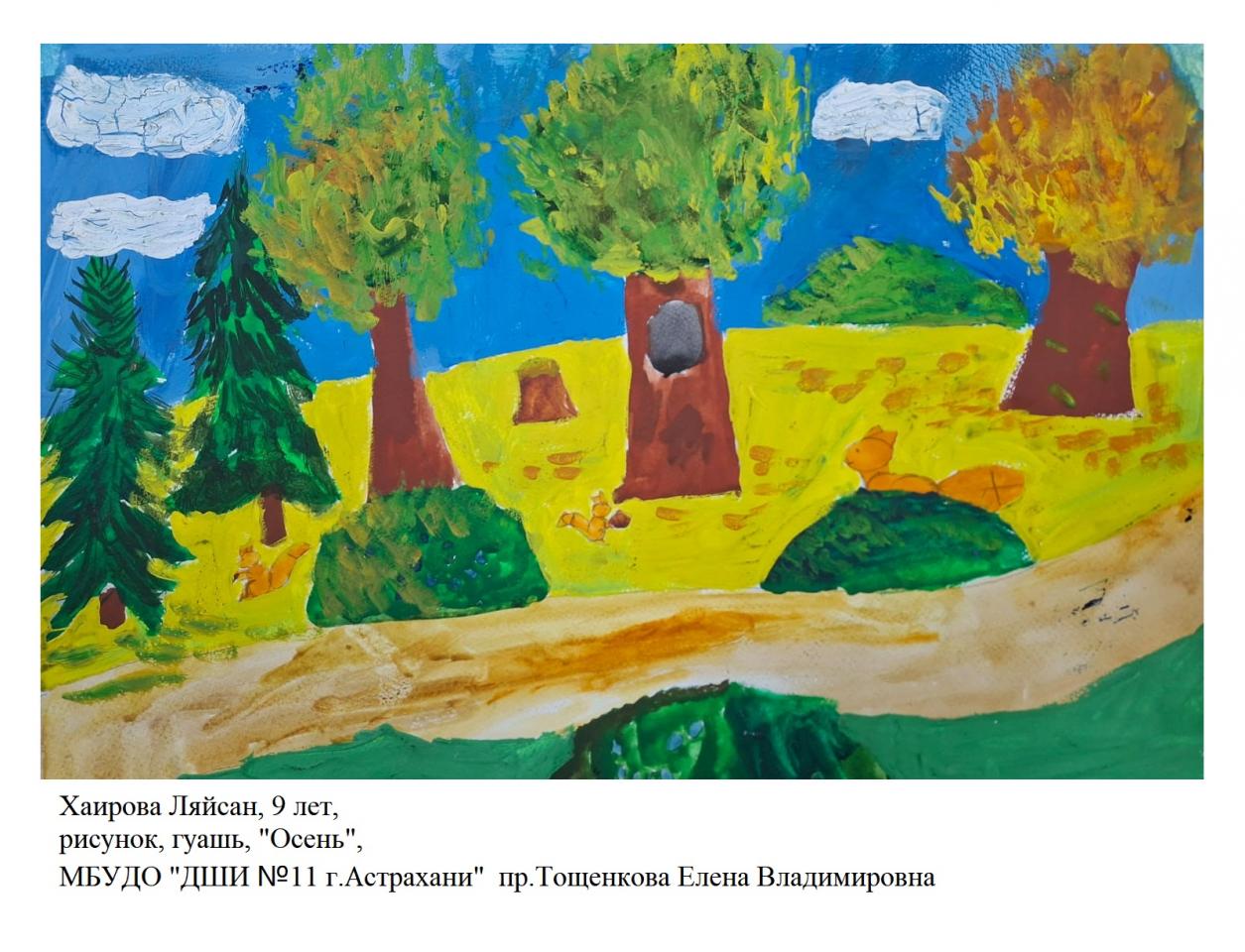 | 124 | Хаирова Ляйсан | В обработке | "Осень" | Рисунок | Тощенкова Елена Владимировна | Принята | Фото работы |