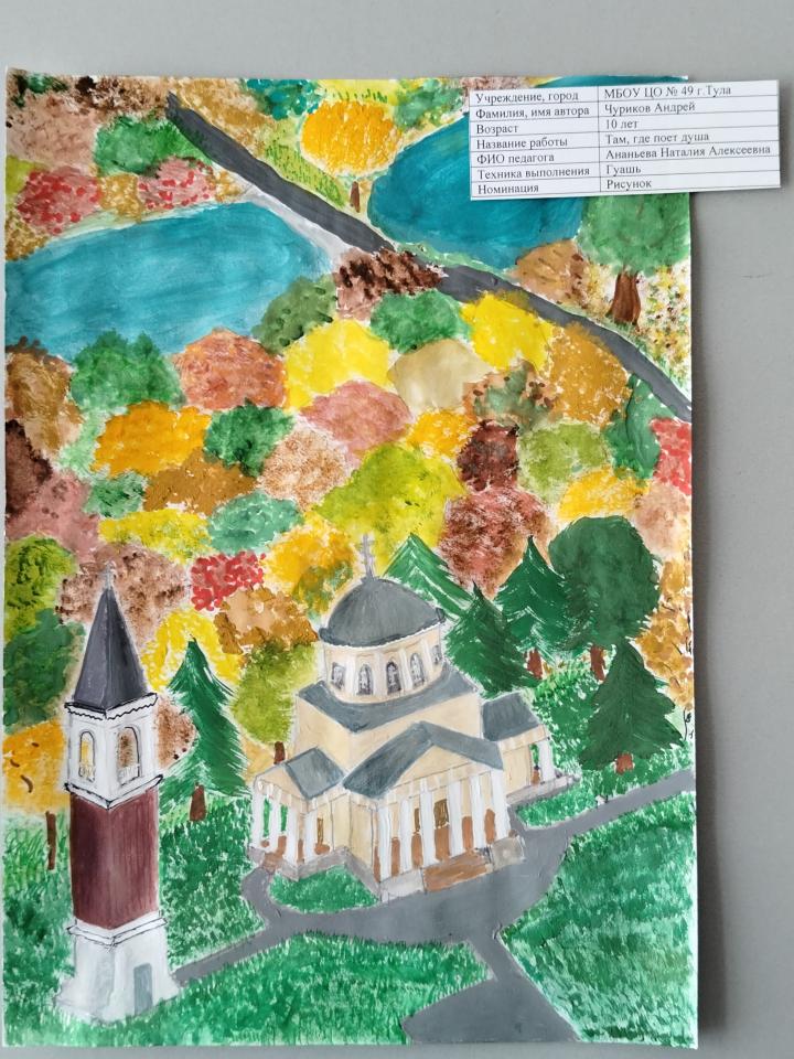 | 74 | Чуриков Андрей | В обработке | "Там, где поет душа" | Рисунок | Ананьева Наталия Алексеевна | Принята | Фото работы |