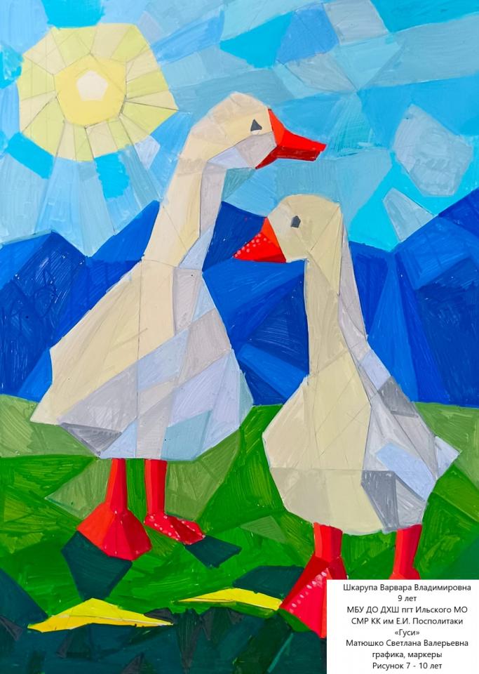 | 85 | Шкарупа Варвара | В обработке | "Гуси" | Рисунок | Матюшко Светлана Валерьевна | Принята | Фото работы |
