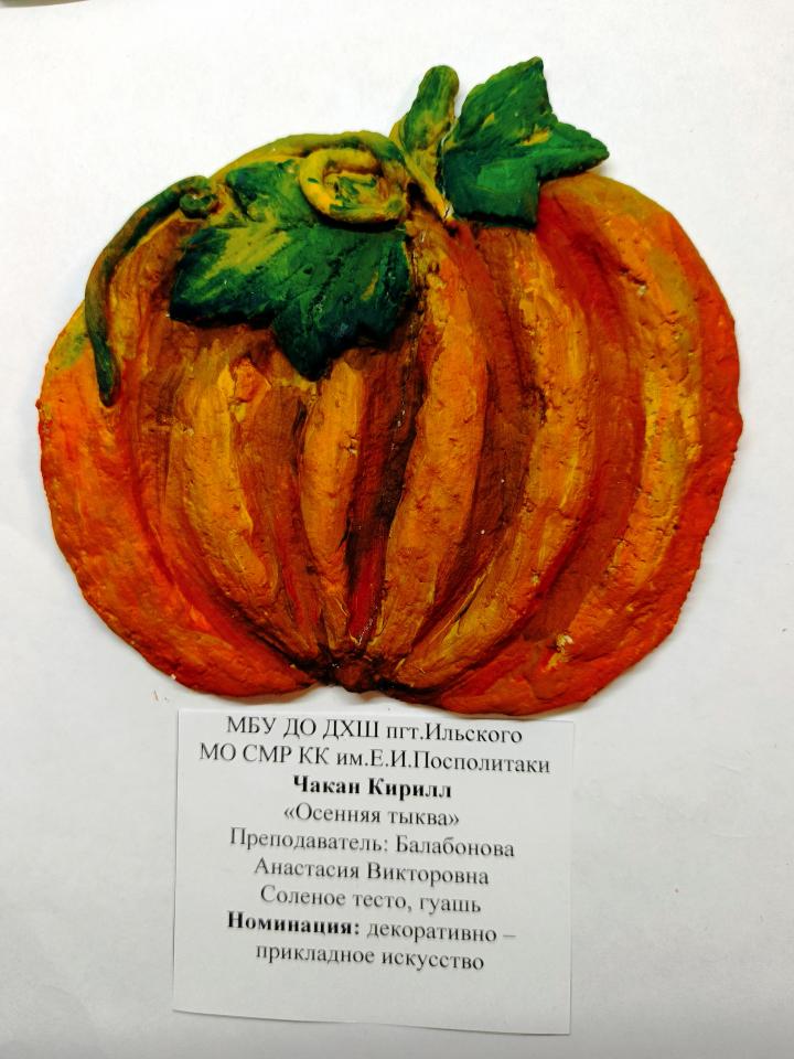| 91 | Чакан Кирилл | В обработке | "Тыква" | Поделка | Балабонова Анастасия Викторовна | Принята | Фото работы |